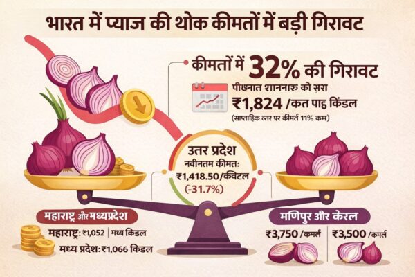 महाराष्ट्र कापूस घाऊक किंमत साप्ताहिक विश्लेषण अहवाल – फेब्रुवारी २०२६ (चौथा आठवडा) कार्यकारी सारांश हा अहवाल फेब्रुवारी २०२६ च्या चौथ्या आठवड्यातील (२४-२८ फेब्रुवारी) महाराष्ट्रातील विविध जिल्ह्यांमधील कापसाच्या घाऊक किमतींचे सर्वसमावेशक विश्लेषण सादर करतो. उपलब्ध आकडेवारीनुसार, या कालावधीत कापसाची सरासरी किंमत ७,५३२.०० रुपये प्रति क्विंटल इतकी नोंदवण्यात आली आहे. मागील आठवड्याच्या (७,६३९.४३ रुपये) आणि मागील महिन्याच्या…